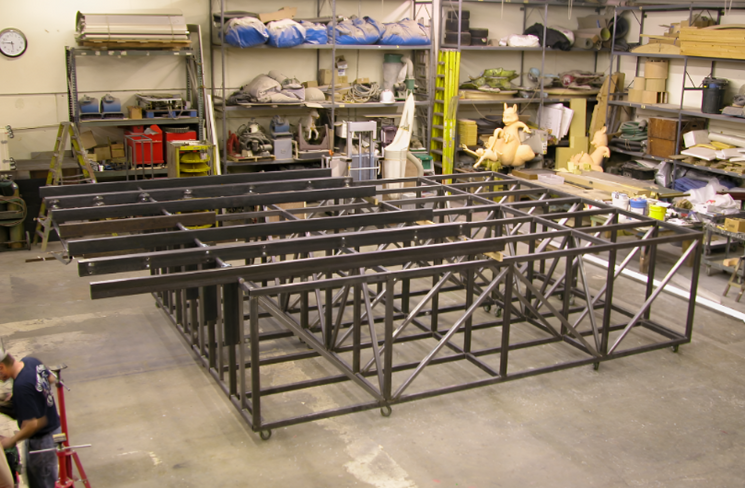 Directed by Joseph Kahn and filmed at 20th Century Studios - Los Angeles, CA, Show Motion Engineering, Inc. presents the design, engineering, and fabrication of the Rotating Show Action Stage Set for the Cosmeo - “Experience Learning” Commercial by Discovery Channel. With two 6-foot-tall metal platform decks, each equipped with oversized roller bearing fixtures, this large Stage Set has an actor on a wire-harness gimble open a hidden door on the Sets’ Jungle Environment floor to reveal a