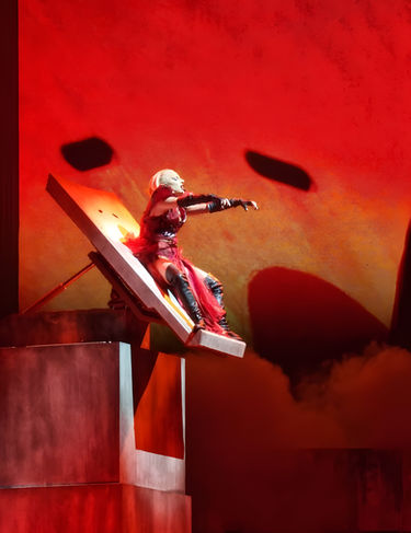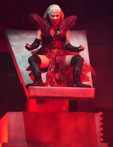Show Motion Engineering, Inc., in conjunction with Matt Pomerantz and Jet Sets - North Hollywood, CA, presents the design, engineering, and custom metal fabrication for Lady Gaga’s Hydraulic Scenic Scissor Lift. This Stage Prop features three 8800 lb. capacity Electric Lift Tables stacked with a custom hydraulic tilting mechanism on top for synced show action choreography. Complete with decorative cladding surrounding its aluminum and steel base frame, this stage-lift rises and tilts