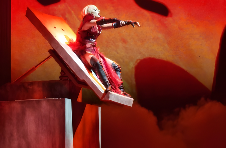 20 ft. in the air, accentuating Lady Gaga’s bold and futuristic aesthetic.