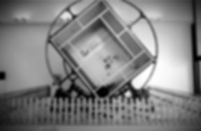 With its spinning axis placed in the direct center of the 16’ by 16’ square room, the Martin Kersels’ Tumble Room kinetic art sculpture consists of a wooden set that is attached to a large square steel structure that is then encased inside two large steel rings that are motion actuated using an electric motor drive system. Presented at Deitch Projects’ 76 Grand Street Gallery from February-March of 2001, Orange County Museum Of The Arts’ “Disorderly Conduct” Exhibit in 2008, which later became the basis for the short